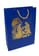 Veľká papierová darčeková taška tmavomodrej farby, na ktorej je zlatou farbou znázornený betlehem. Opačnú stranu tašky zdobia zlaté hviezdičky.