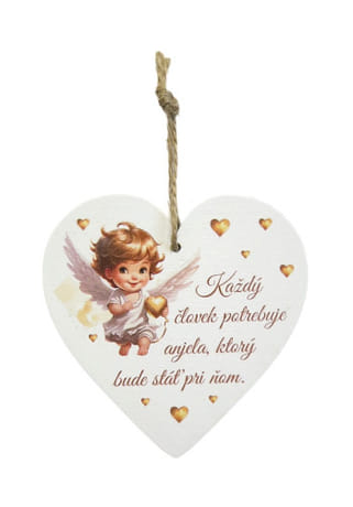 Magnetka: Každý človek potrebuje anjela, ktorý bude stáť pri ňom - v tvare srdca, drevená
