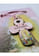 Drevený prívesok na ružovej šnúrke - krížik s farebným obrázkom Panny Márie a s nápisom Fatima.