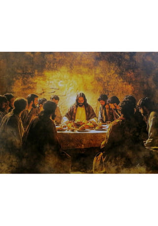 Dekoratívny obraz na drevenom podklade s motívom Poslednej večere. Reprodukcia obrazu je prenesená na drevo, čím vytvára autentický vzhľad a jemnú imitáciu maľby. Rozmer 39 × 30,5 cm robí z tohto diela výrazný doplnok do interiéru, vhodný do domácnosti, kancelárie či modlitebného priestoru.
