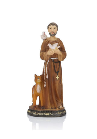 Dekoratívna soška svätého Františka z Assisi, patróna prírody, zvierat a pokoja, je krásnym doplnkom do každého interiéru. Detailné spracovanie zobrazuje svätca v jeho tradičnom habite s vtáčikmi a verným spoločníkom pri nohách, čo symbolizuje jeho lásku k všetkému stvorenstvu.