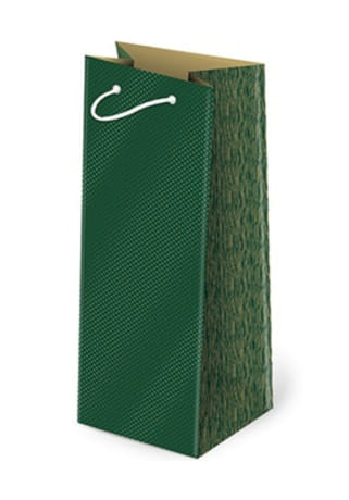 Elegantná darčeková taška určená na balenie jednej fľaše vína, sektu alebo iného prémiového nápoja. Vďaka štýlovému zelenému prevedeniu s jemným reliéfnym vzorom a metalickou fóliou pôsobí luxusne a je ideálnou voľbou na darčekové príležitosti.
