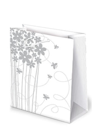 Táto darčeková taška vyniká elegantným a moderným dizajnom v jemných svetlých tónoch, ktoré pôsobia vkusne a nadčasovo. Povrch tašky zdobí kvetinový motív s metalickým leskom.